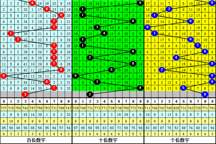 号码012路分析:在历年第043期开奖中,号码012路总比例为26:19:21,其中0路号码断档5期,1路号码断档10期,2路号码断档8期,本期012路比参考1:0:2。