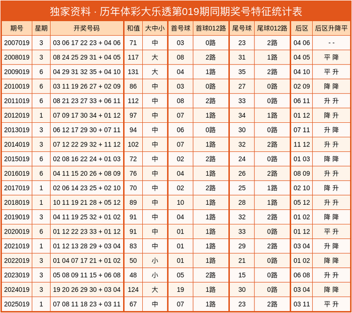 后区分析:去年同期后区开出03、11号球,属于小大+奇奇的形态,在同期数据集中,后区1球升降平分别开出:9次降、9次升、1次平,后区2球升降平分别开出:9次降、7次升、3次平。综合分析来看,本期看好后区号码较去年同期呈现【升、平】姿态,后区两码参考:04、11。